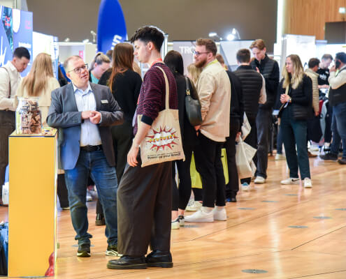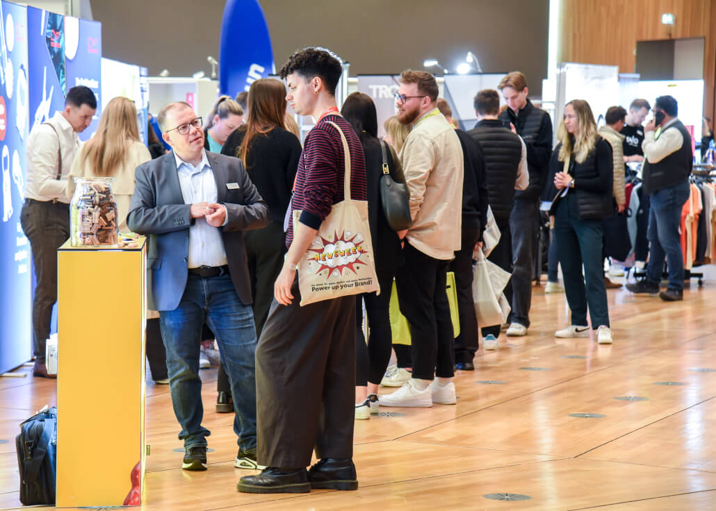 Der „Ausstellungsraum“ war in diesem Jahr nicht, wie 2024, die Halle 1 auf dem Frankfurter Messegelände, sondern der etwas kleinere Saal „Harmonie“ im Congress Center. Die räumliche „Reduzierung“ wurde allerdings durchaus als Upgrade verstanden: „Die Location war super, im Vergleich zum letzten Jahr war das schon besser – bitte so beibehalten, wir haben nur positive Rückmeldungen von unseren Kunden bekommen!“ (Christian Ringleb, Inhaber Die-Werbemittel-Fabrik).