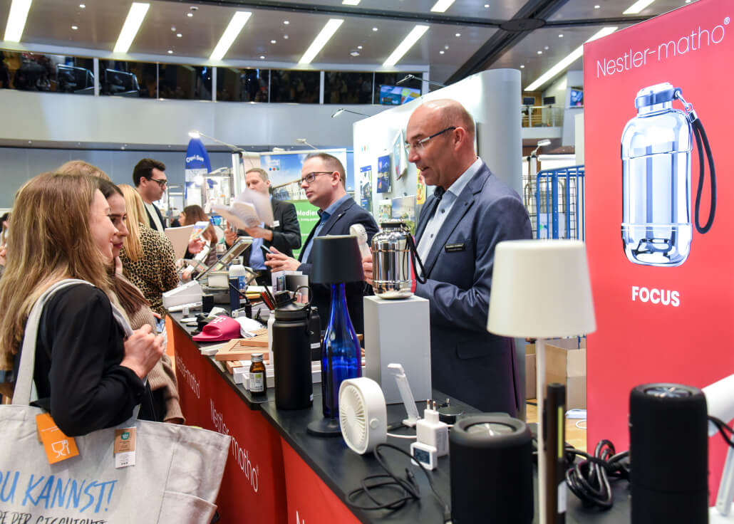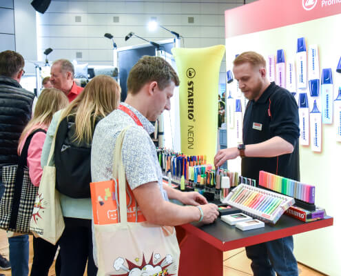 Die Neugier der Marketingfachleute aus Industrie und Handel scheint ungebrochen, haptische Werbung ist in der „echten Welt“ noch immer ein besonderes Erlebnis, dass spezielle Emotionen weckt. Diese wurden auch von den 10 Beratern mit und 27 ohne Counter hinreichend bespielt, wie Peroni Schreiber (concept promotion GmbH) bestätigen kann: „Für uns Berater ist es superwichtig, die Kunden auf der GWW-NEWSWEEK zu haben – persönlicher Kontakt ist für uns absolut essenziell! Und für die Kunden gibt es ja fast keine bessere Möglichkeit, die ganze Welt der haptischen Werbung zu Gesicht zu bekommen. Für uns ist die NEWSWEEK somit ein perfekter Ausstellungsraum!“.